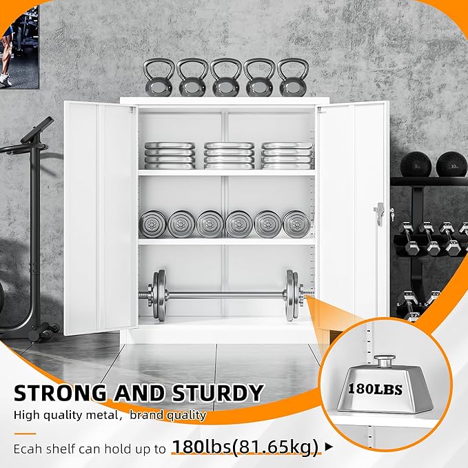 - 『WEIGHT CAPACITY』Sturdy and reliable - each shelve in this metal cabinet can hold up to 180lbs. With a heavy duty metal frame, these shelves will stabilize their contents and protect them. Whether you want to store office files, garage tools, or other large and heavy items, it's no problem.