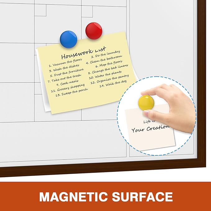 - 【Convenient Installation】 The dry erase calendar comes with fixing kits and installation instructions, allowing for free installation. It can be hung with movable hooks, or firmly mounted on the wall through pre-drilled holes and screws. The whiteboard can be installed horizontally or vertically.Overall size: 36" x 24" ( frame included), writing surface size: 33.66" x 21.85"
