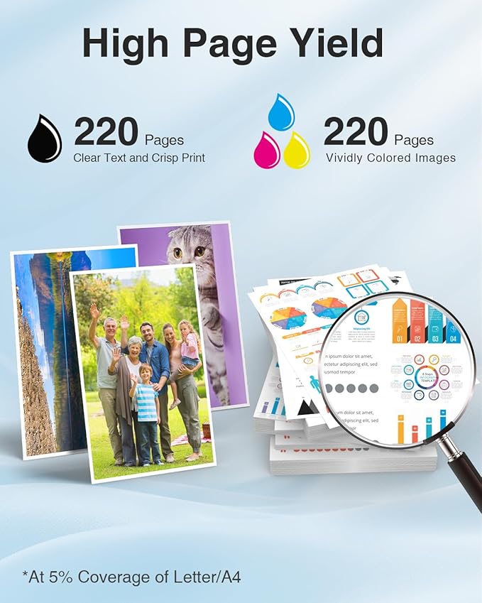 - 【High Page Yield】Compatible LC401 ink cartridges. UP to 220 pages per LC401 black ink cartridge, and 220 pages for LC401 color ink cartridge (Letter/A4, at 5% coverage).