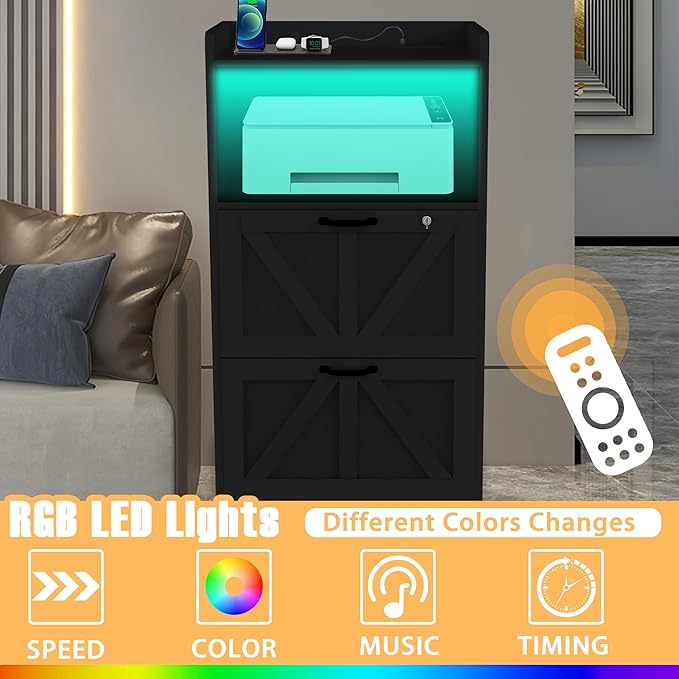 - 【Filing Cabinet with LED Lights】The vibrant lighting design of the two drawer file cabinet (different color, speed adjustment, music sync, timing function), create a cozy and stylish atmosphere with a remote-controlled LED strip.
