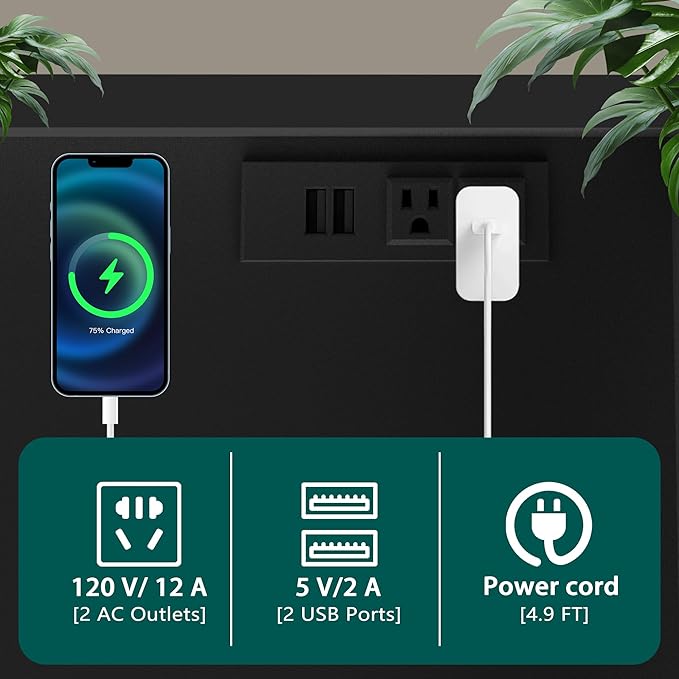 - 【File Cabinets with Charging Station】With 2 built-in power outlets and 2 USB charging ports, this lateral file cabinet provides flexible and fast charging for your printers, scanners, cell phones, tablets, and other office power devices.