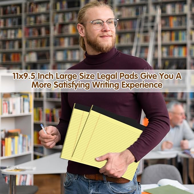- 【Large Size】Our legal pads measure approximately 11 x 9.5 inches (27.94 x 24.13 cm), providing plenty of writing space for all your needs. The legal pads have a sturdy backing that provides good support while you write