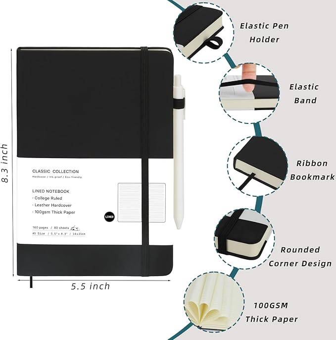 - Versatile Use: Our A5 notebooks are great for journaling, writing in a diary, taking notes, making lists, drawing, work or daily planning, and more. Perfect gift for college students, children, friends, family or business colleagues