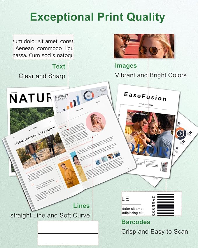 - Superior Printing Quality: All EaseFusion 62 ink cartridges for hp printers are rigorously tested to ensure consistently outstanding performance. You can enjoy sharp, clear text and vibrant, stunning colors without any blocking issues