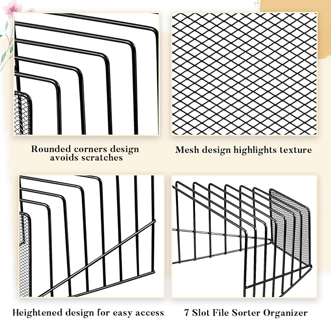 - Advanced Features: this wire incline file holder includes 7 slots for efficient file, accounts, mails, postcards, letters, documents, albums classification; It has rounded edges to prevent accidental scratches or marks when removing documents, further, it is delivered fully assembled so you don't have to worry about assembling parts