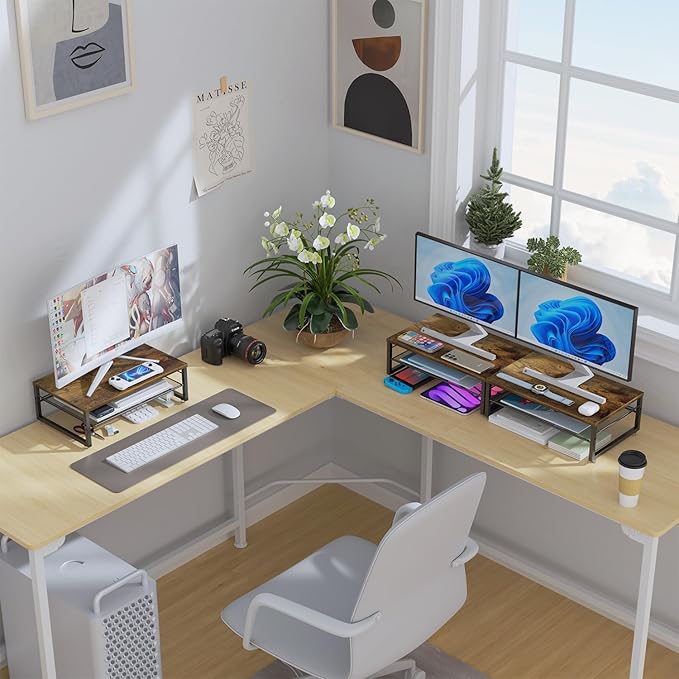 - 【Practical and Stylish】 The laptop stand has a simple yet sophisticated dual-layer design, providing ample space to store various office supplies, keeping your desk tidy. This allows you to work more efficiently in a comfortable and organized environment.