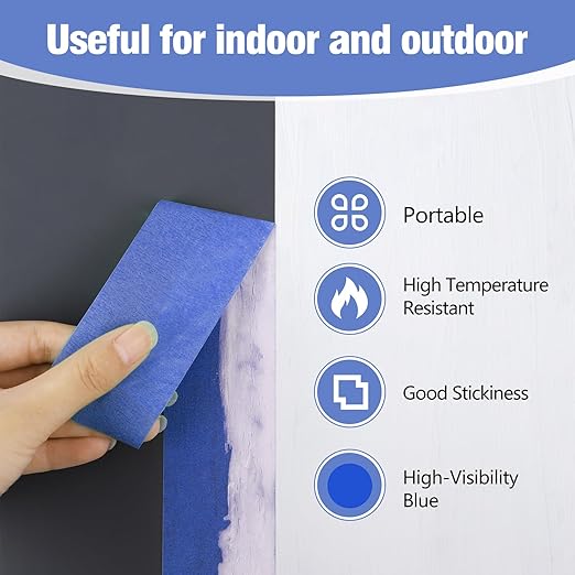 - Wide application: Painters blue tape can be used for art spray painting, wall painting, edge treatment, home improvment, car spray painting, DIY crafts, etc., and has the functions of marking, painting, trimming, edging and packaging, etc. Widely used in industry and life