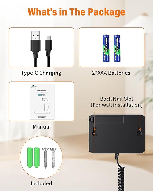 - High Accuracy Measurement Wide: The digital postal scale has a built-in high-accuracy sensor, which has been tested and measured for 100,000 times to minimize the error. Measuring range: 50g-200kg. Error range: 30g-200Kg: 10g; 20Kg-200Kg:100g