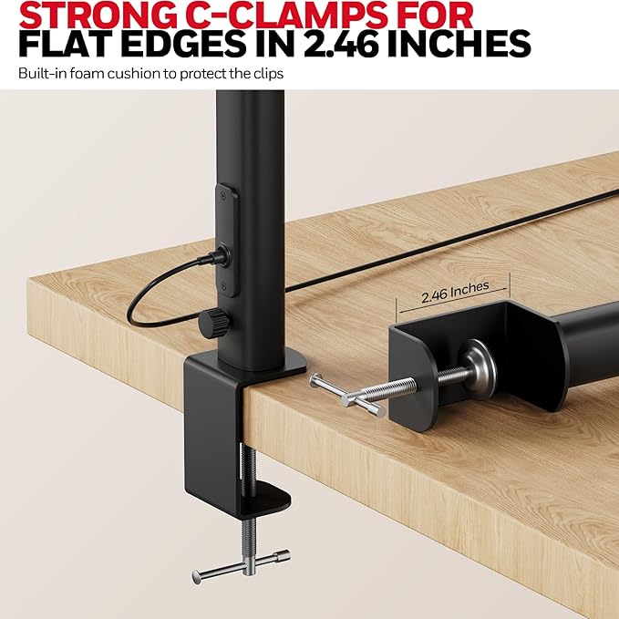 - [ULTRA WIDE, ULTRA BRIGHT & EASY TO INSTALL] Featuring a 31.49inches pluggable dual-section head design, this lamp for desk ensures easy assembly while illuminating a larger area. The adjustable metal clamp easily secures the lamp to the edge of your desktop within 2.46 inches, eliminating any space constraints on your workspace. With its user-friendly installation process, you can enjoy the benefits of this desk lamps for home office without additional tools or hassle