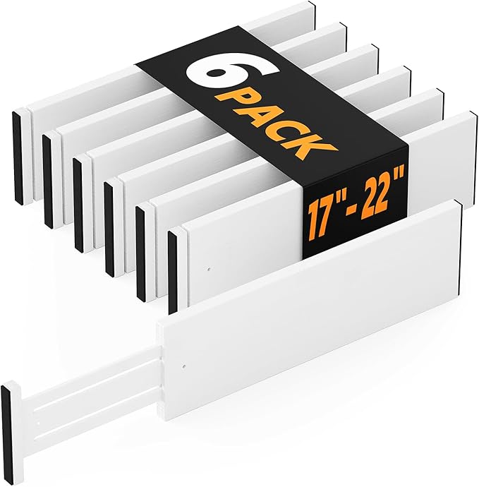 - Adjustable Expandable Organization: Each drawer divider is 4.65" wide, 0.6" thick and expandable from 17" to 22" in full length; Suitable for most drawers in your home, bedroom, bathroom, closet and office