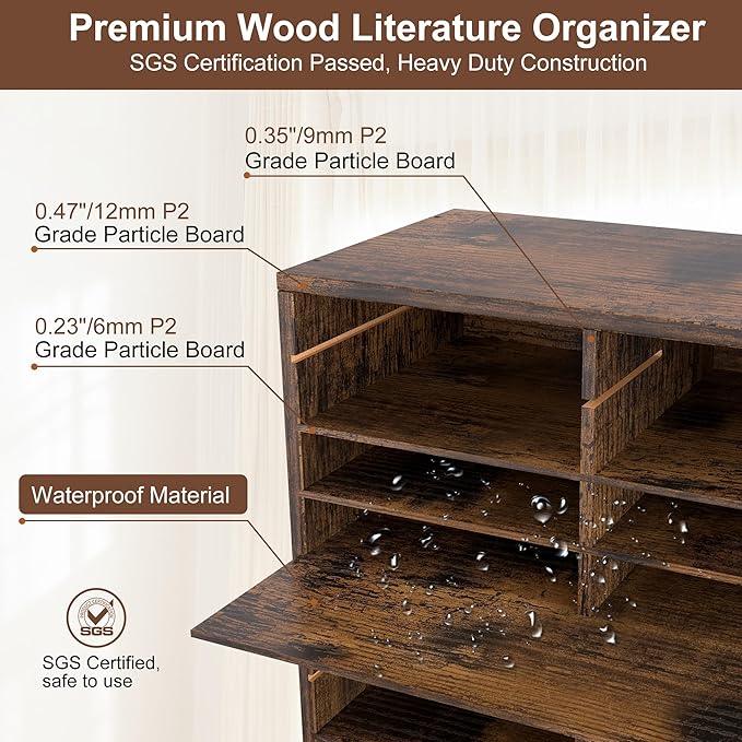 - Wood Literature Organizer with Adjustable Shelves: Crafted from melamine-coated board with EPA-certified, exceptional resistance to deformation, wear-resistant and waterproof reliable mail organizer for desk countertop. Adjust or remove shelves to make space for taller items.