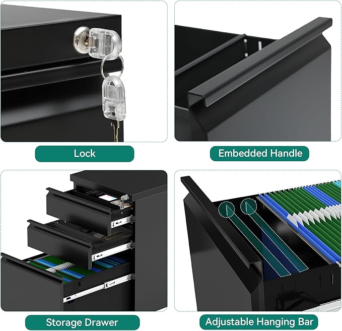 - 【Durable & Sturdy】The entire filing cabinet, including the inner lining of all drawers, is built using robust, heavy-duty steel with good finishing for long-lasting durability; Sturdy enough to place a printer on it without any deformation.