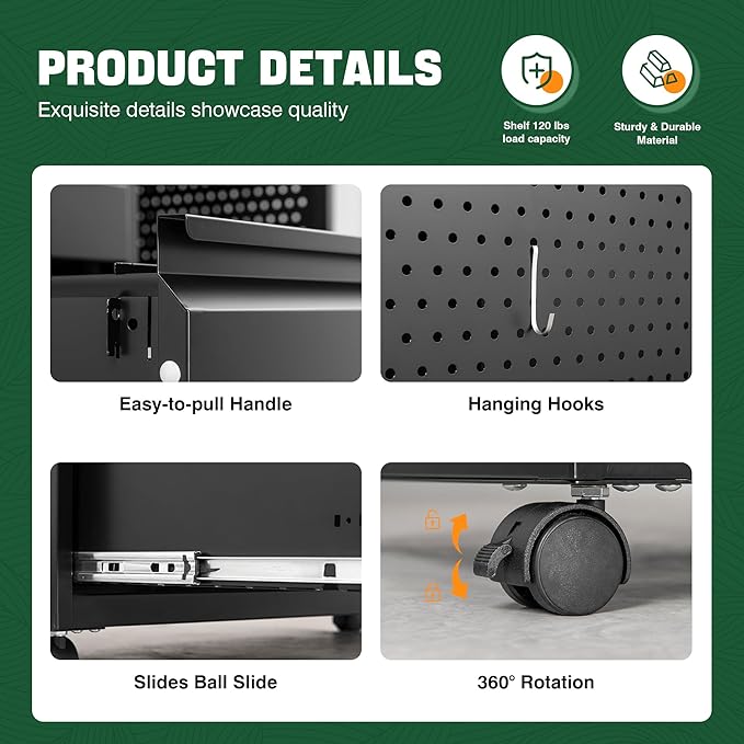 - 『Easy to move』4 removable wheels- printer stand can be moved and adjusted in position freely,2 wheels lockable to keep cabinet stable;Drawer with lock ensure the safety of items.