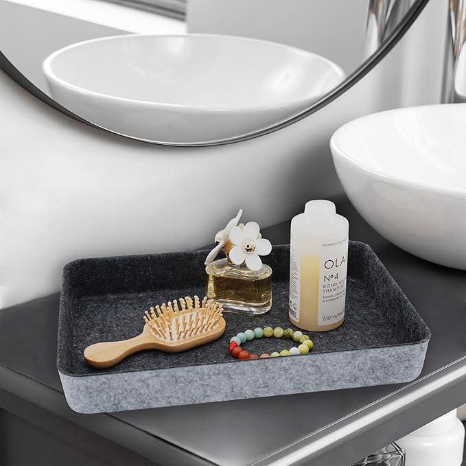 - 【Sustainable material】recycled felt with comfortable touch feeling. no noisy like plastic , keeps stuff from flying around in the drawer. soft to prevent scratching, flexible for space saved up on desk, kitchen,bathroom or anywhere you desire with these stylish storage and organizer bins.