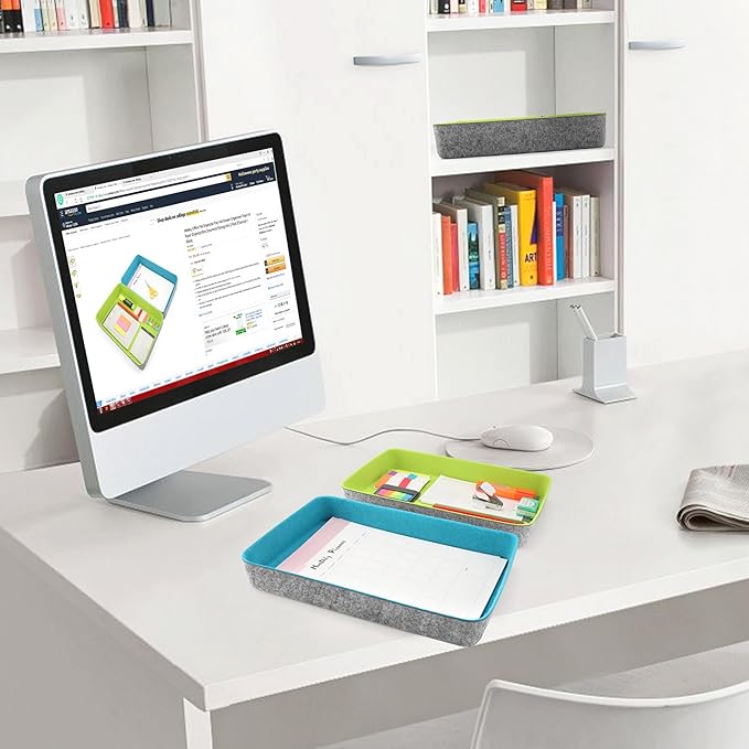 - 【Package content】: 2 piece set Desk drawer organizer trays for papers documental files , 2 tones colors drawer organizer bins, inner turquoise + green, outer gray felt , more economic and affordable for home office dorm storage and organization