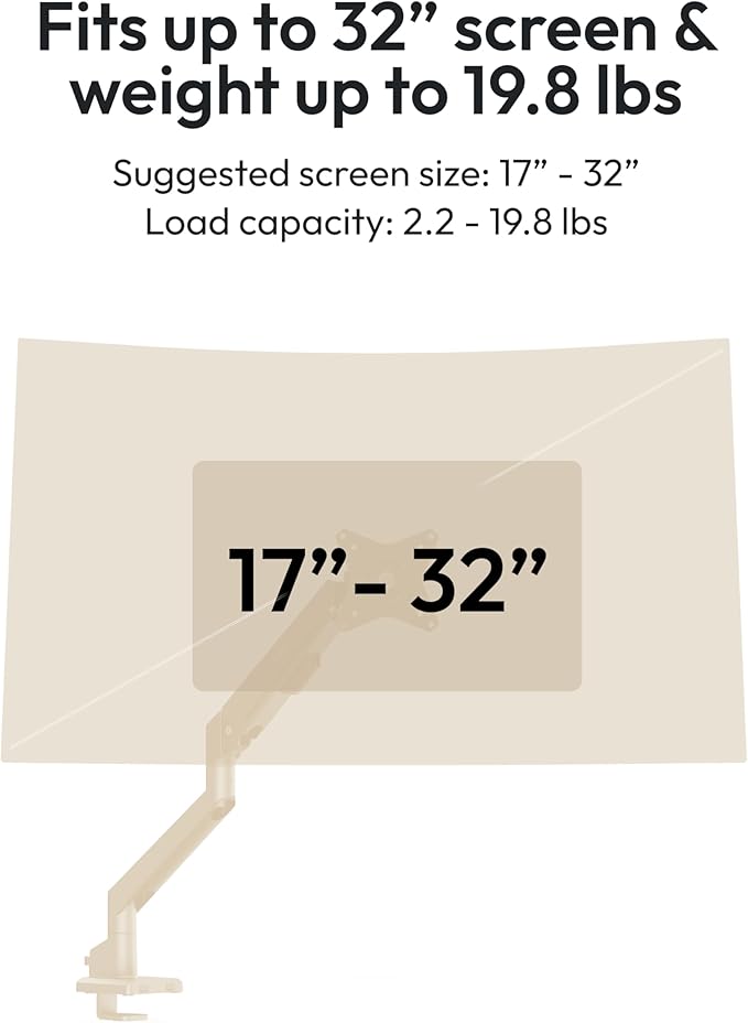 Pixio PS1S Wave Beige Single Monitor Arm Stand Desk Mount - Fits up to 32 inches Monitors and up to 19.8lbs. VESA Compatibility and Integrated Cable Management