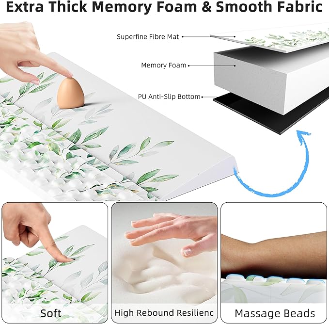 Ospelelf Keyboard Wrist Rest Pad Comfy Ergonomic Keyboard Stand Holder Office Desk Accessories Work from Home Essentials Green Leaves Pattern