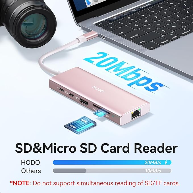 - USB C Card Reader & 100W Power Charging Port: This usbc hub support you to charging your laptop at power up to 100W while connecting multiple peripherals, no need to worry about power storage; Also with this usb c to sd card reader,you can conveniently browse photos instantly on your USB-C smartphones/laptops and transfer hundred photos in seconds to your laptop.
