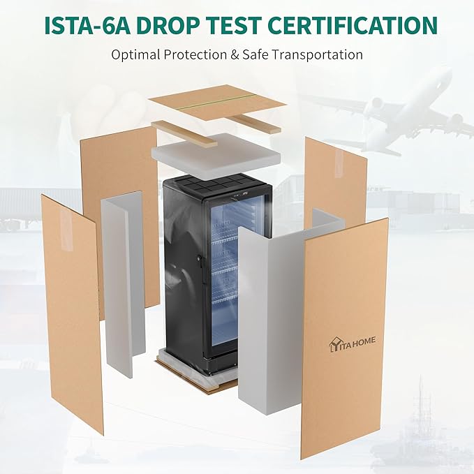 - ISTA-6A Packaging Certification: The vending machine display fridge comes with a customized light box, adjustable shelves, legs and LED light; Change the light box panel to your store name or brand name picture as needed; ISTA-6A Packaging Certification ensures intact transport of the glass fridge; Ideal for office, bars, parties, gas station, waiting rooms, gyms, lobbies, home, dormitory, pool house, commercial business or convenience stores