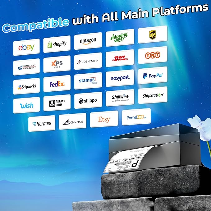 - [Strong Platform Compatibility] - Label printer for small business is compatible with USPS, UPS, eBay, Esty, Shopify, Amazon, PayPal, Poshmark, and other major sales platforms. Make printing more convenient. Ideal for your online small business for shipping packages