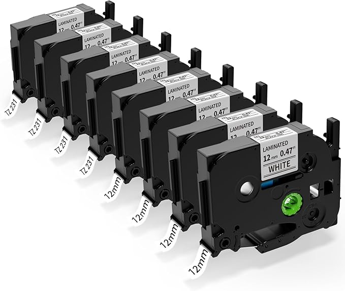 - Compatible with P Touch Label Tape Information : 8-Pack Tze-231 Tapes Replacement for Brother P touch Label Maker Tape TZe231 TZ231 TZ231s TZ-231 TZc-231 TZe Tz tape,12mm 0.47 laminated white tape, Color: Black Ink on White Tape, Width: 0.47 Inch (12mm), Length: 26.2 Feet (8m).