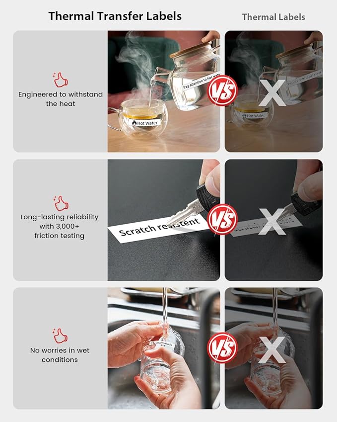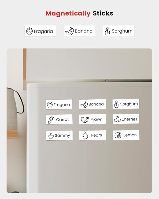 - Various, long-lasting labels: The A30 bluetooth label printer makes pre-cut or continuous labels, patterned labels, refrigerator magnetic labels, colored font labels, ribbons, fabric iron-on labels, premium glitter labels, hot stamping labels, luminous labels and so much more. This is an all-in-on printing solution for everyday or special occasions. No fading and just clear, durable prints that stand up to water splash, high and low temperatures
