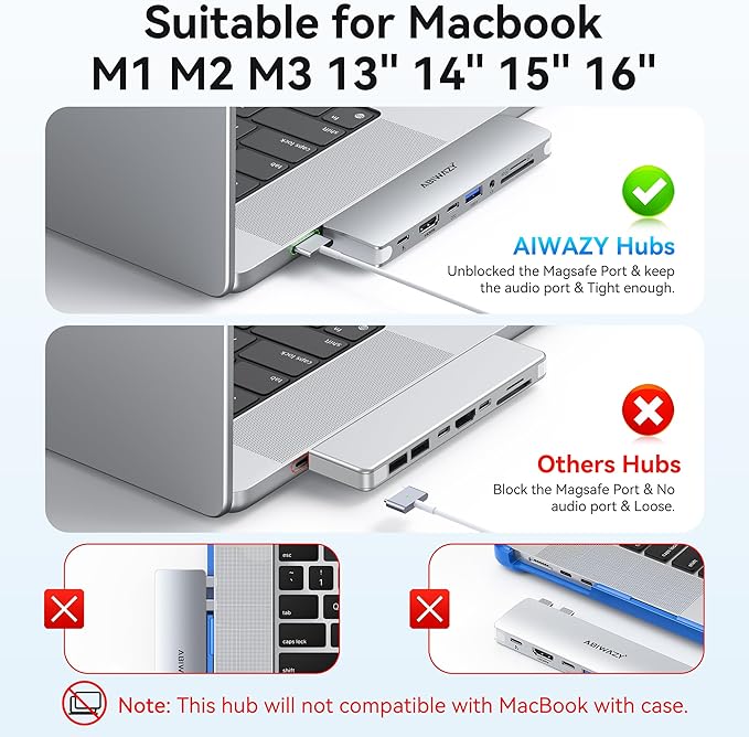 - MacBook Pro Adapter with Magnetic Charging Port Compatibility: This MacBook Pro USB adapter is designed to seamlessly work with the latest MacBook models without obstructing the magnetic charging port. It is fully compatible with MacBook Pro Air models from 2016 to 2024, ensuring a hassle-free experience. Please note: This adapter may not fit if your MacBook is encased