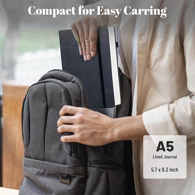 - 𝐕𝐞𝐫𝐬𝐚𝐭𝐢𝐥𝐞 𝐔𝐬𝐞: This A5 notebook is ideal for office, school and home use, and is a great gift choice for women, men, business executives, college, students and people in many other fields. This 5.7 x 8.3 inch journal can be carried around in a bag and is also a good helper for your travel records, meeting all your needs