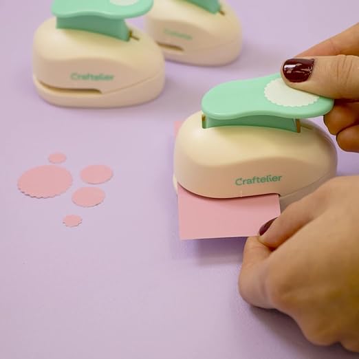 Craftelier - Circle Scallop Punch Set | 3/8", 5/8" & 1" Shape Scalloped Hole Puncher for Paper Crafts | Round Scalloped Hole Punch for Scrapbooking, DIY Cards & Journals | Craft Punch Set for Paper