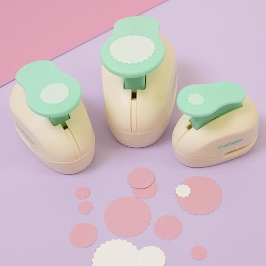 - 🕳️ CRAFT CIRCLE SCALLOP PUNCH SET: Includes 3/8" (0,95cm), 5/8" (1,58cm), and 1" (2,54cm) scalloped circle punches.