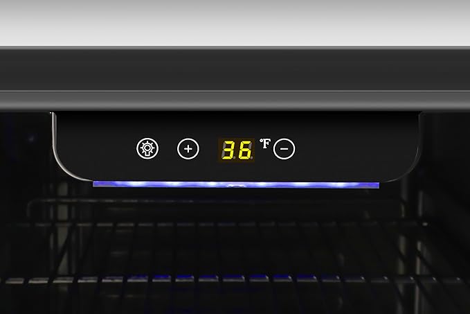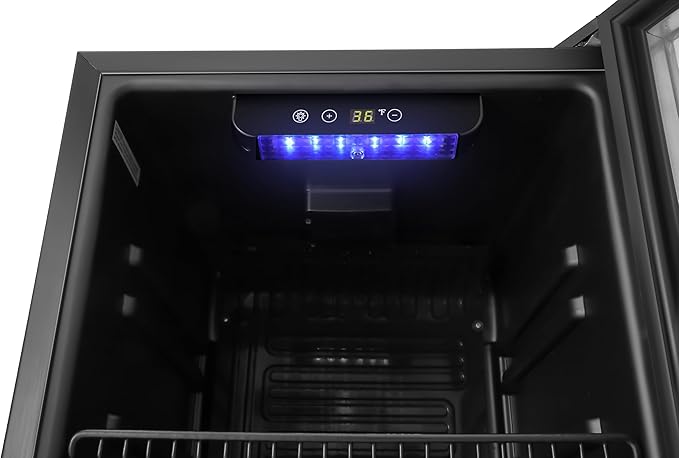 - Blue LED Interior Lighting: The interior is lit with blue LED lights, enhancing the visibility of your beverages while creating an attractive display, making it easy to find and select drinks even in low light.