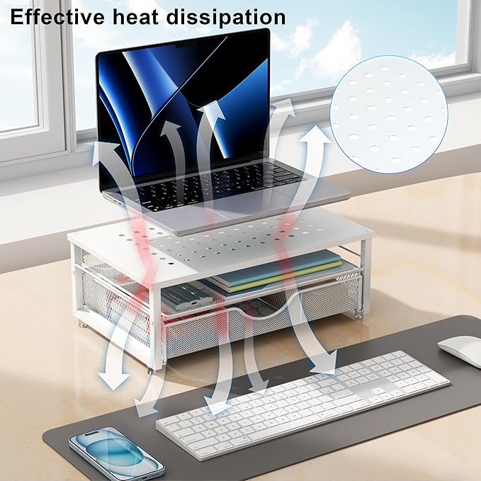 - 【Reduce fatigue】: The monitor stand raises the monitor to a comfortable viewing height, relieves stress on the neck, shoulders and back, and improves comfort and creativity throughout the day.