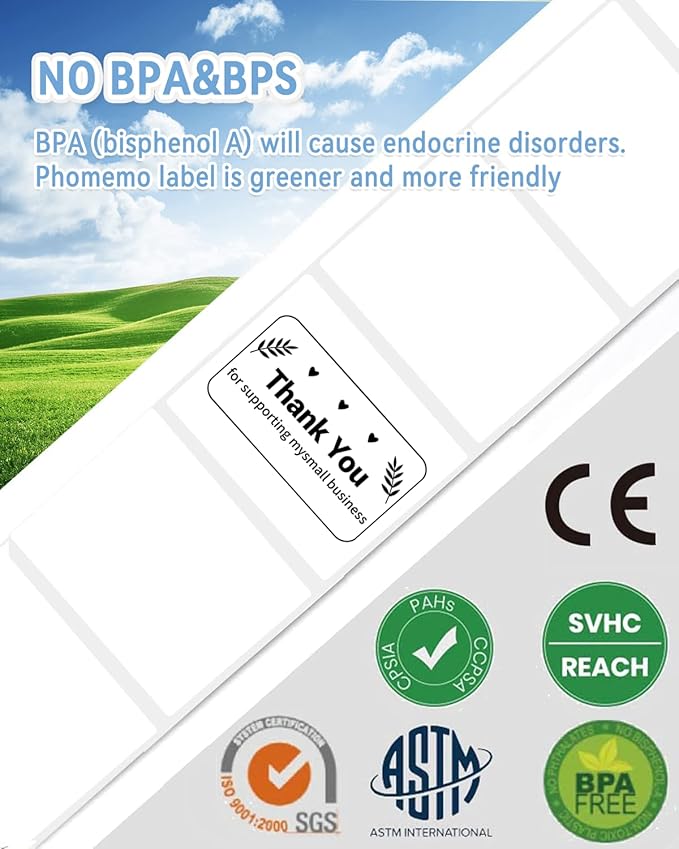 - 【 100% Compatible 】- Phomemo thermal labels compatible with MUNBYN, Nelko, JADENS, ASPRINK, ROLLO, OMEZIZY, ITARI, IDRPT, POLONO, JIOSE, K COMER, LABELRANGE, OFFNOVA, PHOMEMO, Dymo, Brother, NEFLACA,BEEPRT, NefLaca and other direct thermal printers.