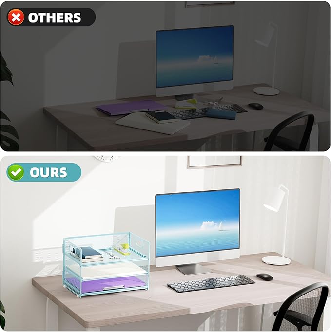 - 【PREMIUM QUALITY】The mesh desktop file organizer is made of lightweight durable metal mesh and reinforced with a solid steel frame that makes it have long-lasting strength and reliable performance.