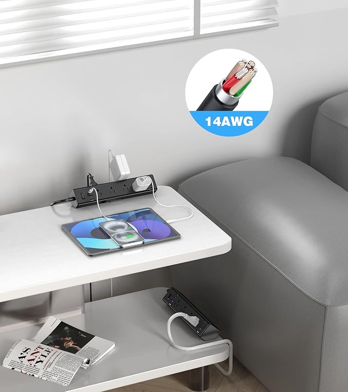 - 【1200J Surge Protection Power Strip】Constructed from fire-resistant ABS plastic, this power strip offers a 1200-Joule surge protection rating with a built-in circuit breaker to guard against overloads, short circuits, and overheating. Effectively handles voltage spikes to keep your computer and other accessories safe.