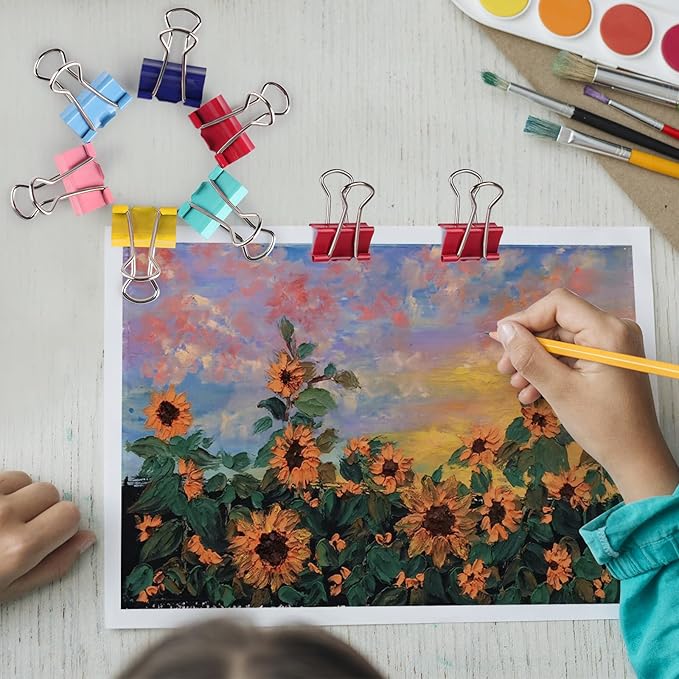 - Premium Material: Colored binder clips are made of tempered steel rust-resistant and reusable, 6 color (purple, green, pink, blue, red, yellow)