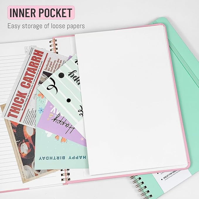 - This notebook 8.5 x 11 comes with an elastic closure band and a pocket on the back cover for storage. Each page has a Date for easy date tracking.