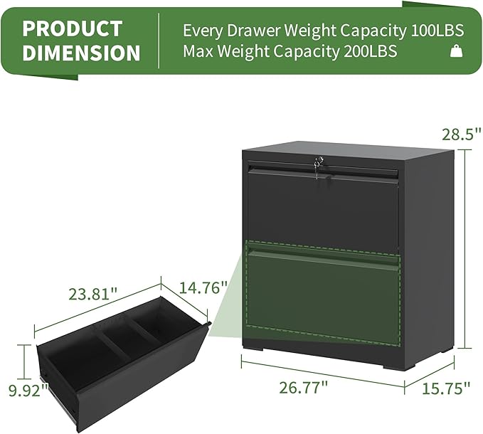 - 【Modern & Durable】This heavy-duty metal file cabinet is crafted from premium cold-rolled steel, offering exceptional durability and structural integrity. The powder-coated surface provides superior resistance to scratches, rust, and corrosion, ensuring long-lasting performance in busy office environments.