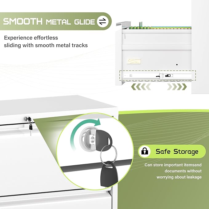 - 【High security】Two-drawer file cabinet with Lock is equipped with a built-in interlocking system to ensure drawer security. One locks with two keys ensures that your files are safe and easy to manage. The cabinet with drawers can be locked into two drawers at the same time with a lock, which is smooth and easy to operate.