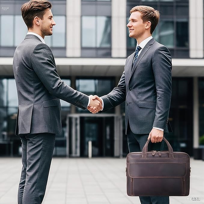 - 【Purchase with Confidence】According research, we only have 7 seconds to make a first impression. This stylish leather briefcases will help you to catch eyes and compliments, make you feel confident during business meeting to reach success. The shoulder messenger bag arrives in a anti-dust bag of our brand logo. 1 year quality commitment since you buy the men's laptop briefcase, if you have any questions, please reach us, we will help you to resolve the issues.