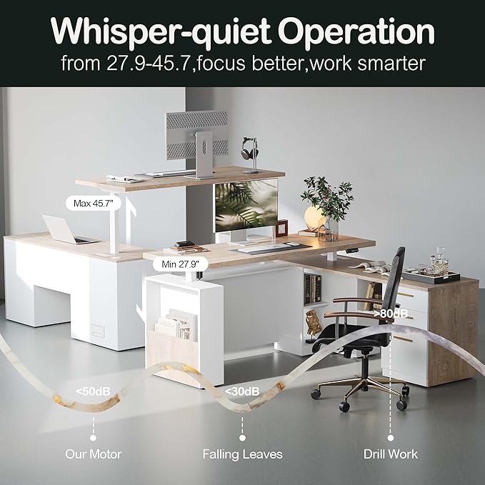 - Powerful Storage System:This lifting executive desk contains a 3-drawer cabinet part, and there is also storage space in its lifting column part where you can place office necessities or decorative items