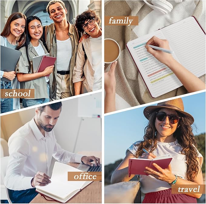 - A5 Hardcover Notebook: Available in 6 stylish colors (Black/Pink/Blue/Purple/Orange/Red). Features a high-quality matte PU leather cover with soft texture and stain-resistant durability. 160 pages of thick paper with rounded corner design to prevent curling. Single-pack for daily use or 6-pack set for long-term backup and bulk purchase, perfectly suited for both business and study needs.
