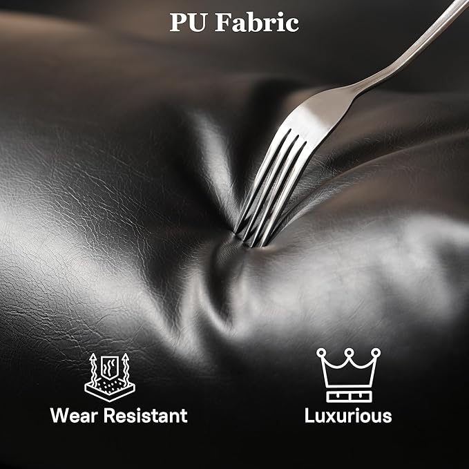 - Faux Lether PU Fabric: This office chair is got this awesome PU fabric that feels amazing, and it's super durable and luxurious. Plus, it's easy to clean and resists stains, cracks, and scratches. The super comfy cushion is filled with high-density foam for ultimate support. It's time to level up your home office with this amazing desk chair!