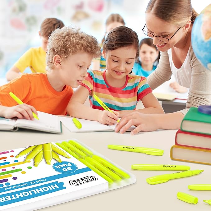 Duchong 30 Yellow Highlighters, Chisel Tip Dry-Quickly Highlighter Markers, Highlighter Bright Colors for Adult Kids, Office Classroom Must Have, School Supplies for Teachers