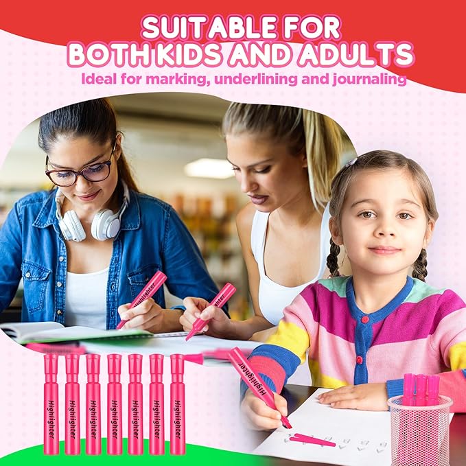 Qilery 24 Pack Tank Style Highlighters Chisel Tip Highlighters Bulk Colored Markers for Adult Coloring, Home Office Supplie(Pink)