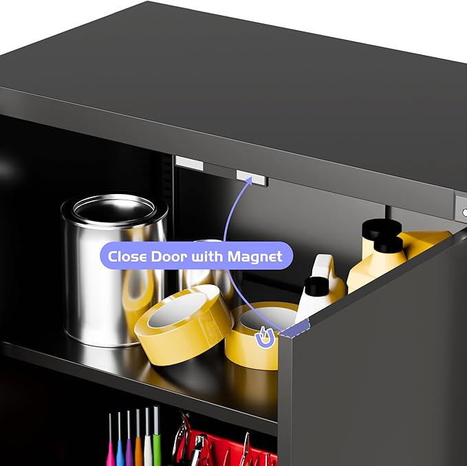 - [Garage Storage Cabinet] Plenty of storage. "great garage cleanup".You can move them around as needed and the casters and wheels work great on all the different surfaces inyour garage. Extra storage strong and fit your needs, it is sufficient for garage use.