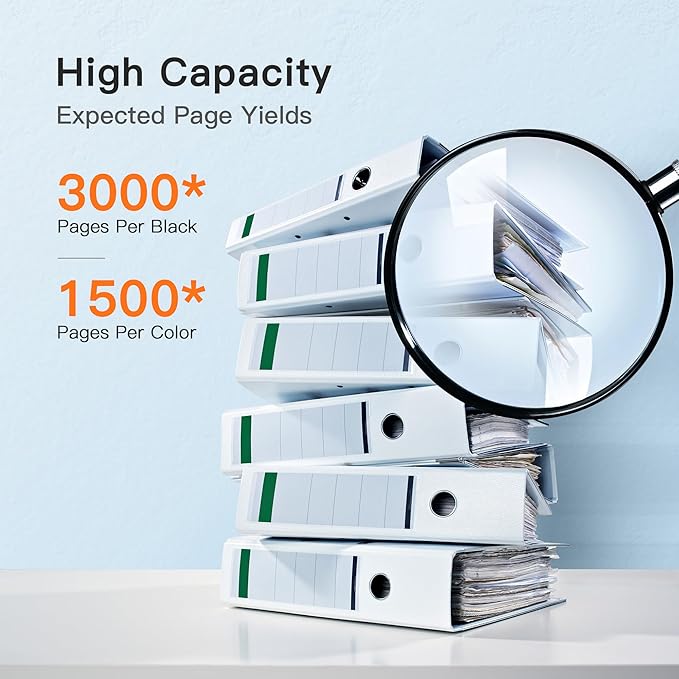 - Approximate Super High Yield: 3000 pages per black cartridge, 1500 Pages per color cartridge (based on 5% coverage)