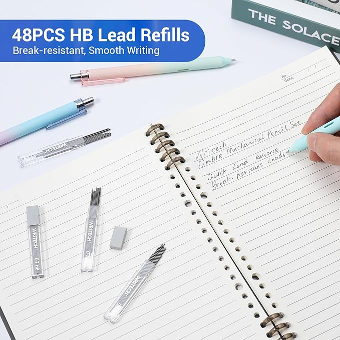 WRITECH Up Mechanical Pencil Set: 6ct Gradient Barrel 0.7mm Mechanical Pencils with 4 Tubes of HB Lead Refills and 2 Extra Erasers for Writing Drawing Sketching Drafting