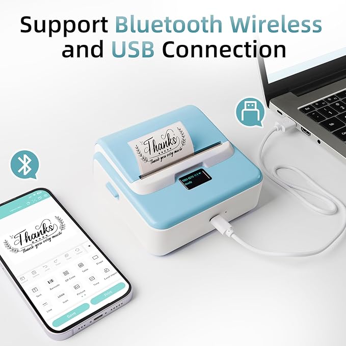 - Effortless Connectivity: ORGSTA T003 Bluetooth label maker is compatible with iOS, Android, and PC; Connect effortlessly to your phone via Bluetooth or to your computer using a USB cable; Label printer includes an easy-to-install driver compatible with Windows, Mac OS, Chrome OS and Linux; For iOS & Android phone, simply download the "4Barcode" app
