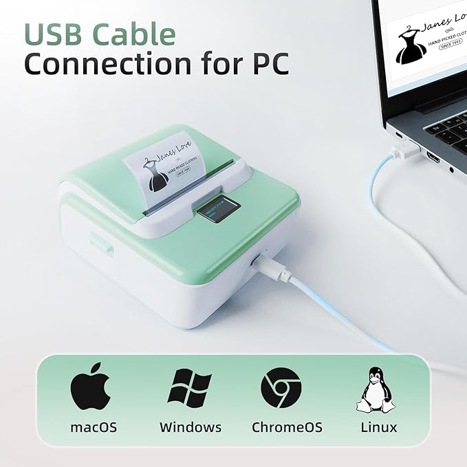 - Effortless Connectivity: ORGSTA T003 Bluetooth label maker is compatible with iOS, Android, and PC; Connect effortlessly to your phone via Bluetooth or to your computer using a USB cable; Label printer includes an easy-to-install driver compatible with Windows, Mac OS, Chrome OS and Linux; For iOS & Android phone, simply download the "4Barcode" app